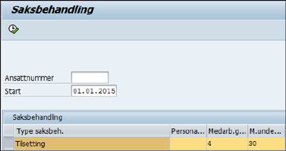 Registrer startdato for tilsetting/gjeninntredelse, og velg saksgang for tilsetting, eller evt. gjeninntredelse.